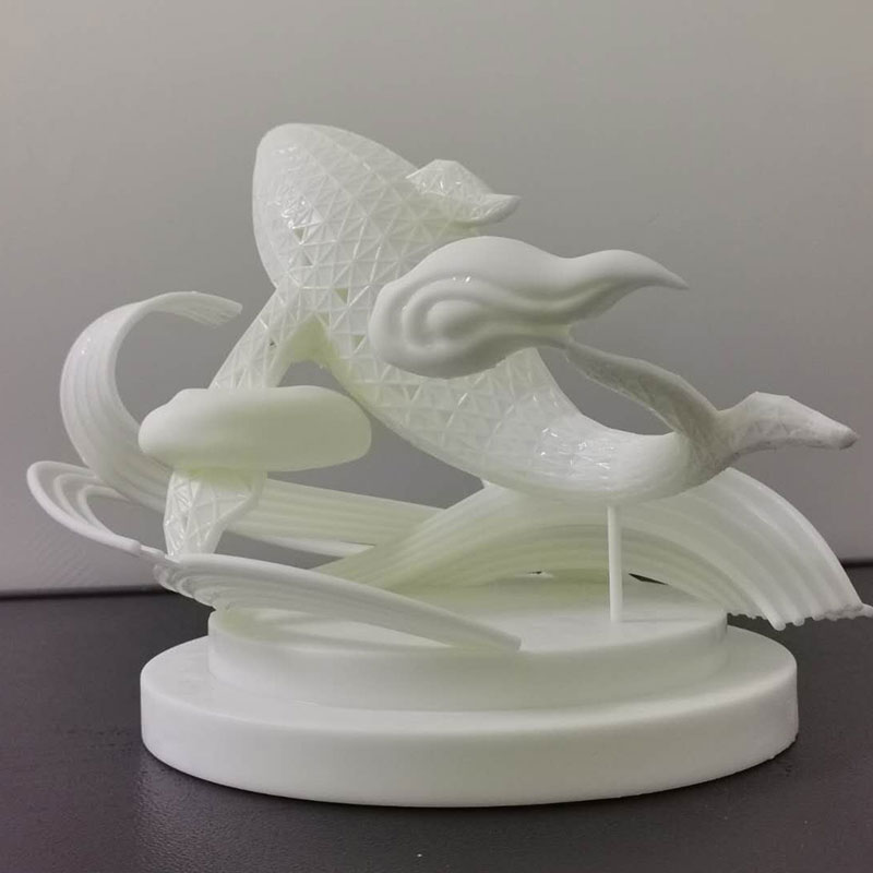 白澤3D打印過程:我們優秀的設計師先通過計算機建模軟件建模,再將建成的三維模型“分區”成逐層的截面,即切片,從而指導打印機逐層打印。打印材料可使用金屬、尼龍、透明樹脂、白色樹脂等以滿足您不同需求。